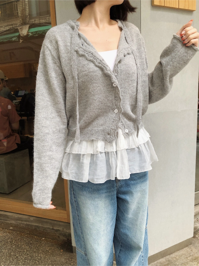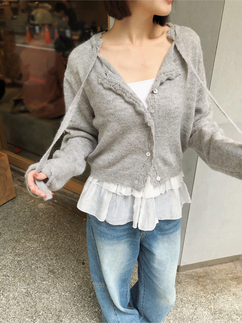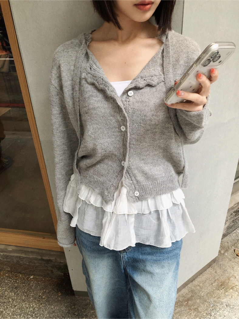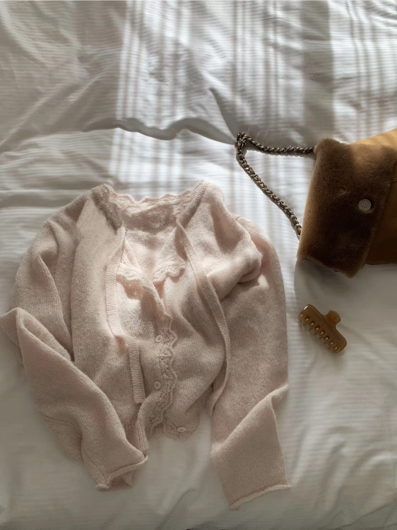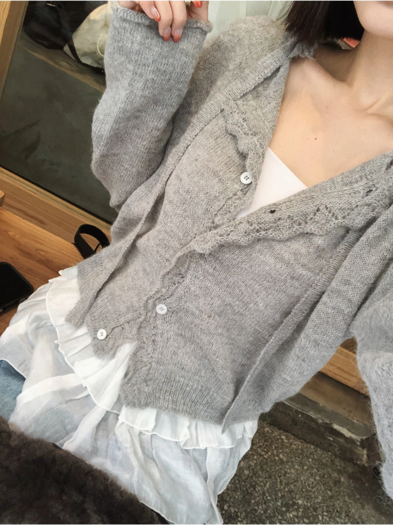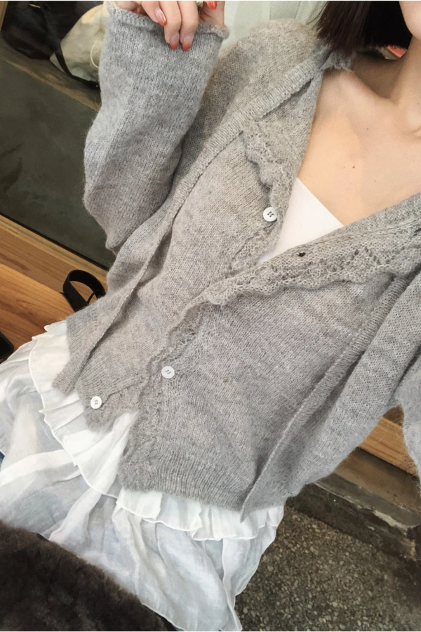 簍空花邊針織衫(灰/粉)
