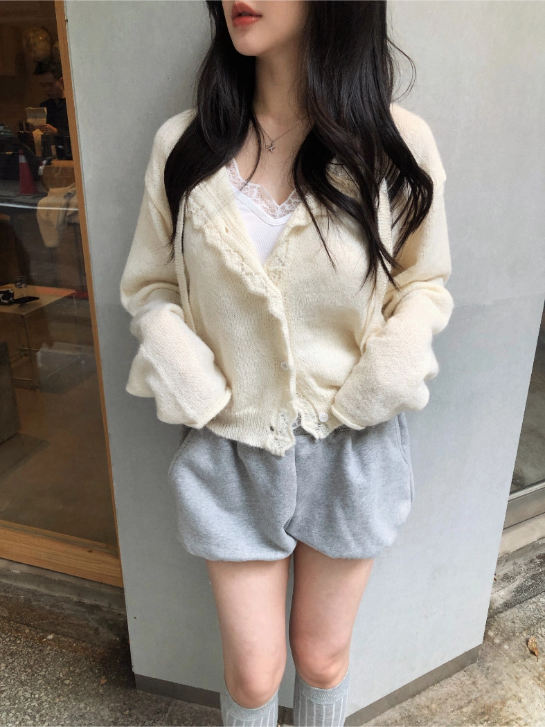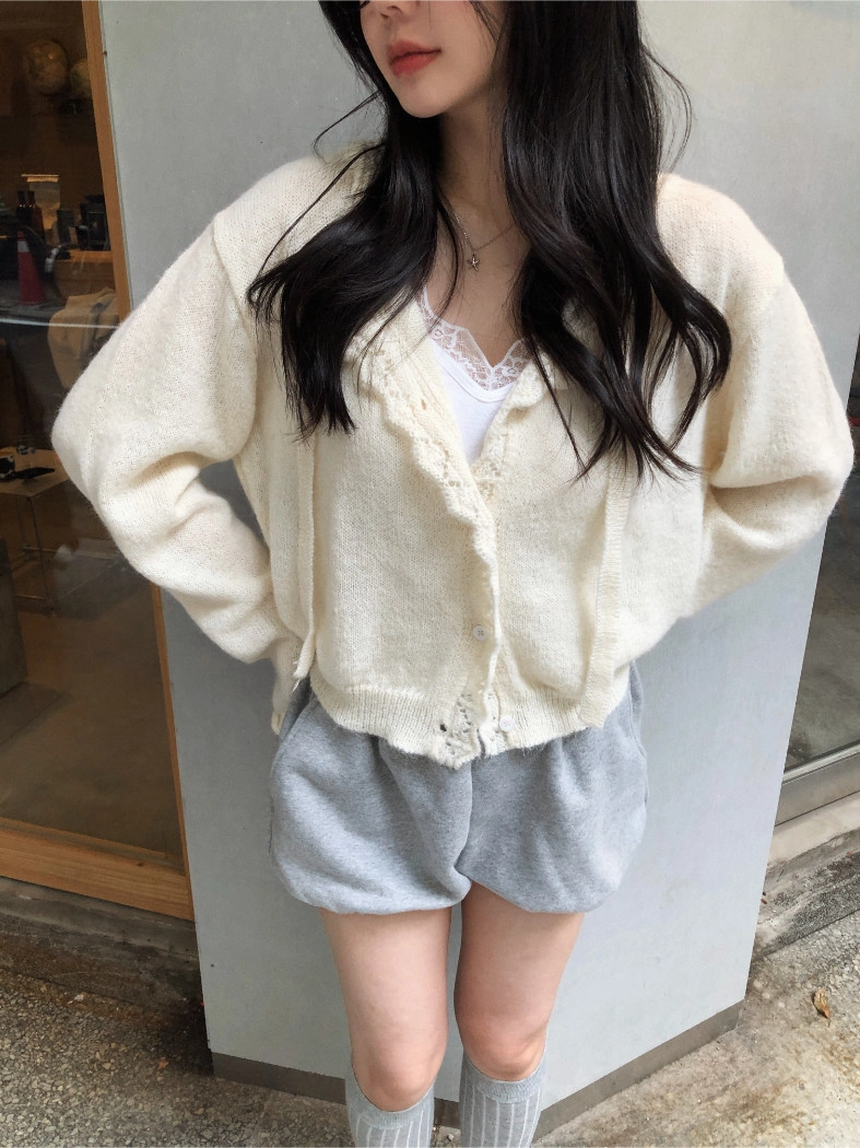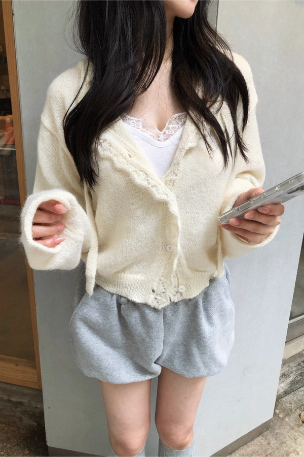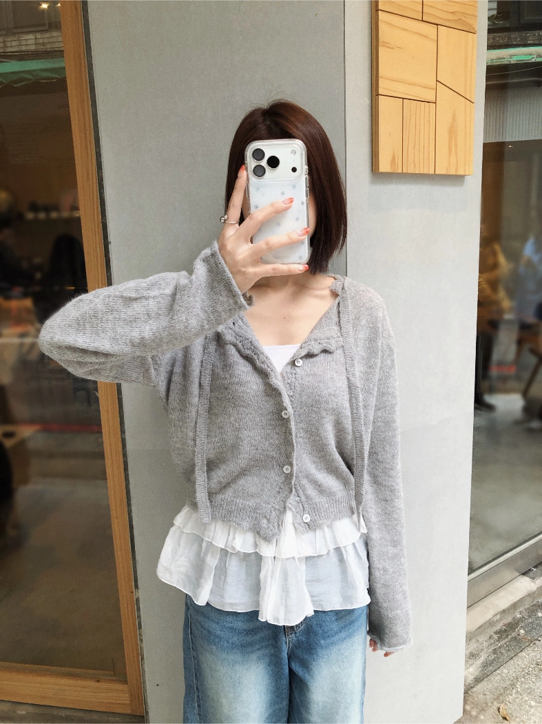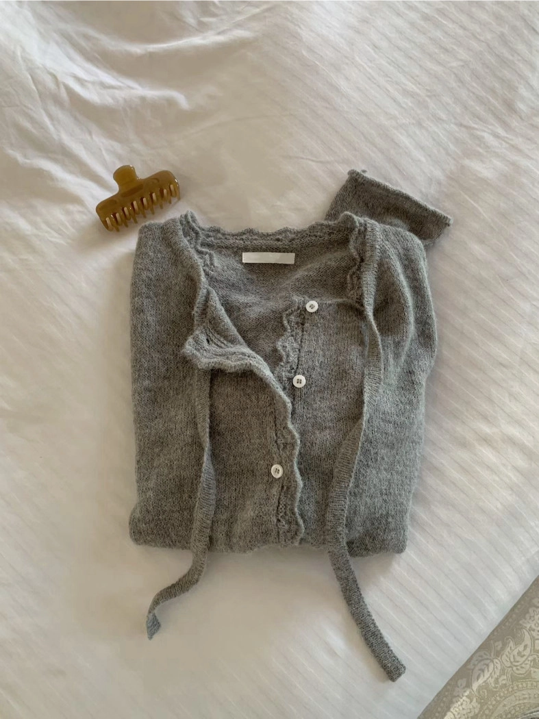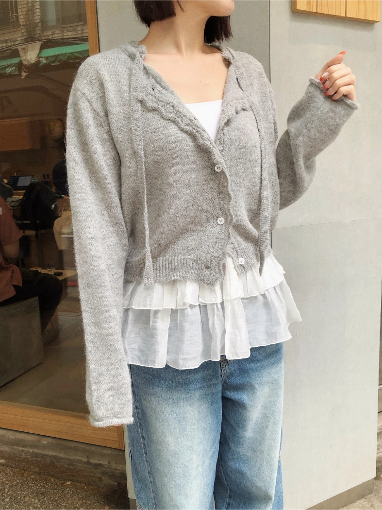 簍空花邊針織衫(灰/粉)