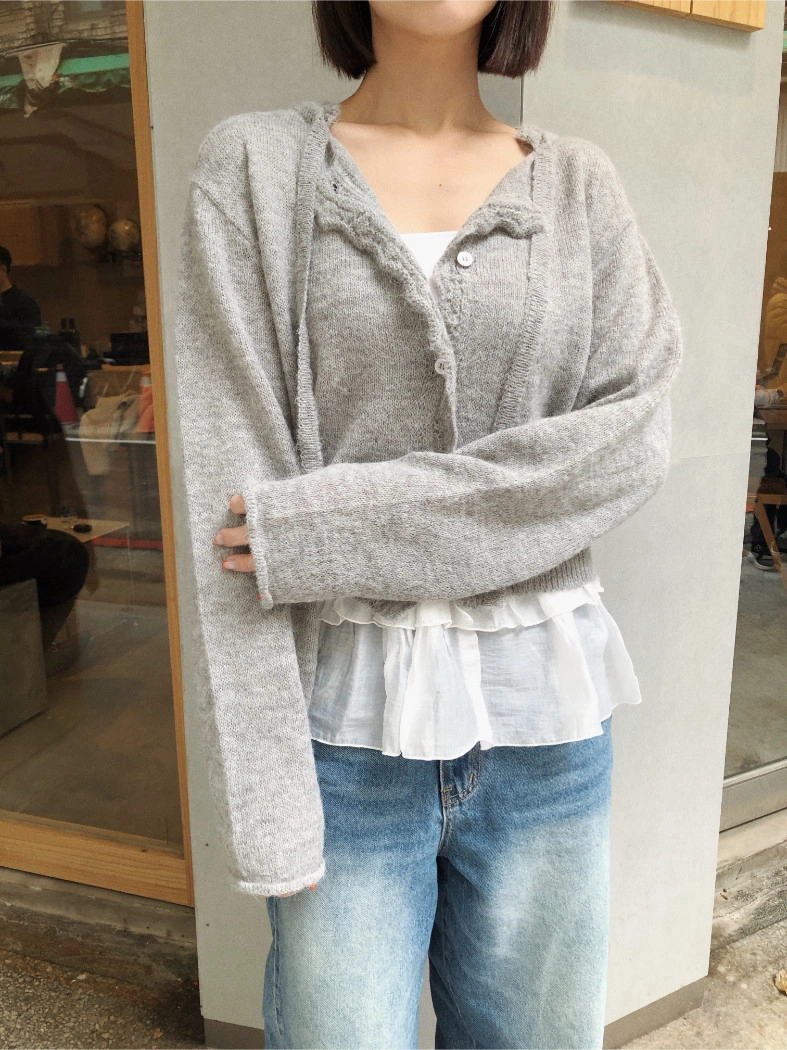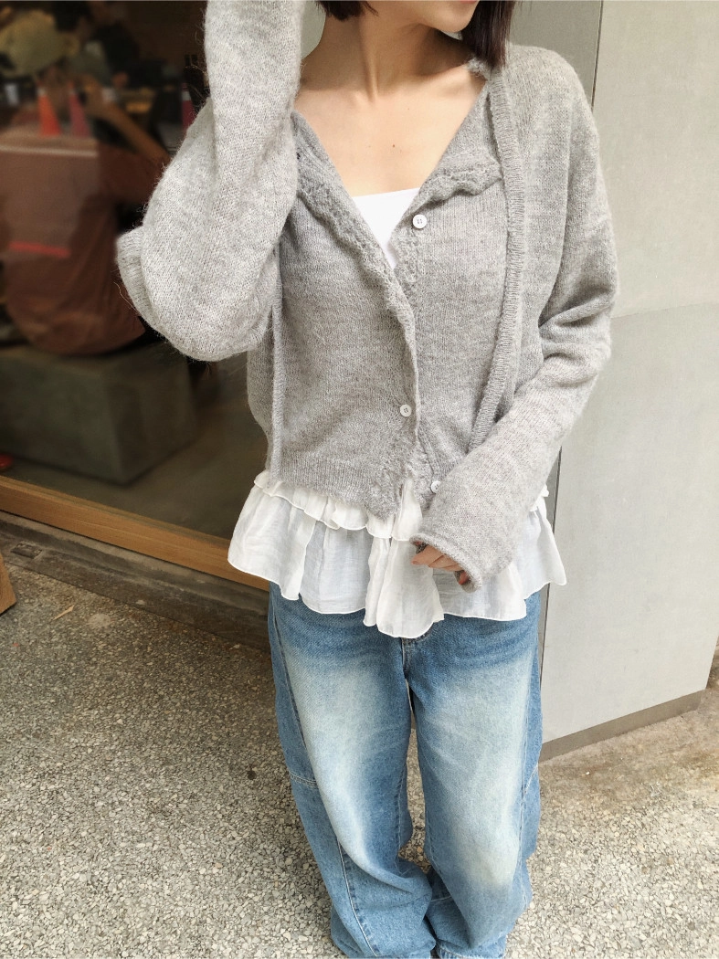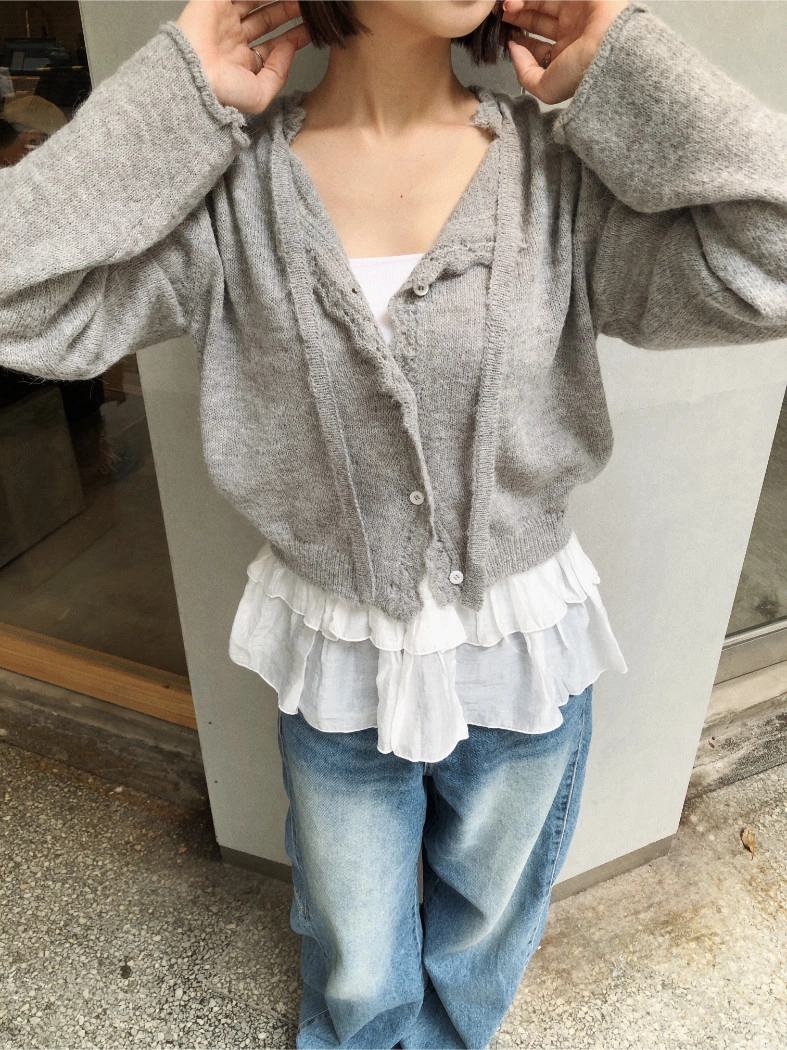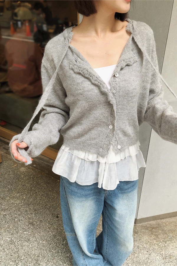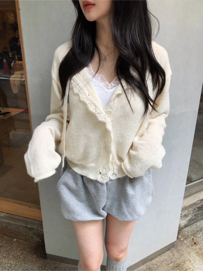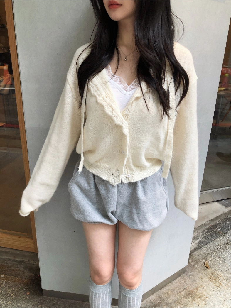 簍空花邊針織衫(灰/粉)