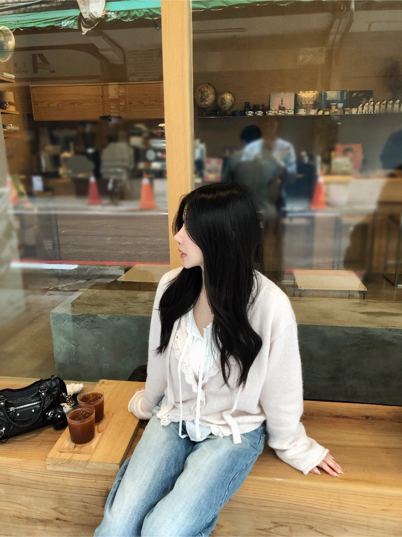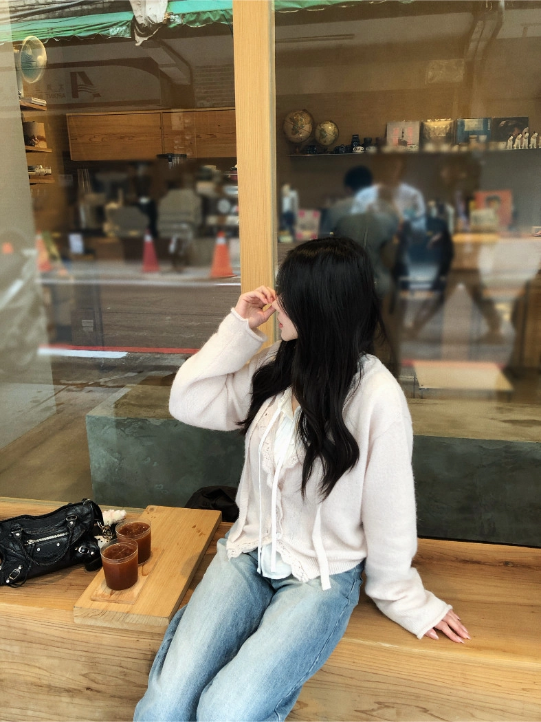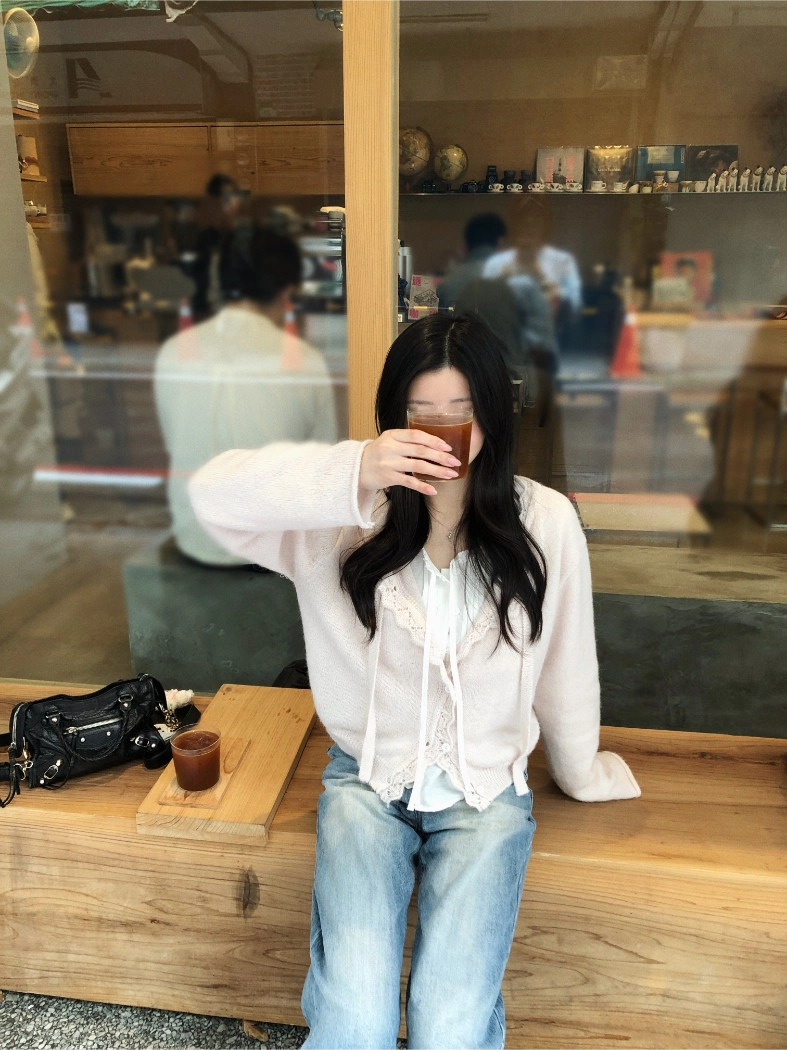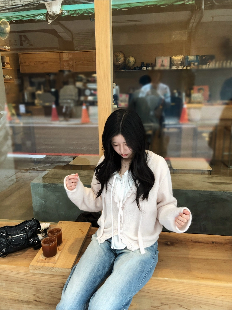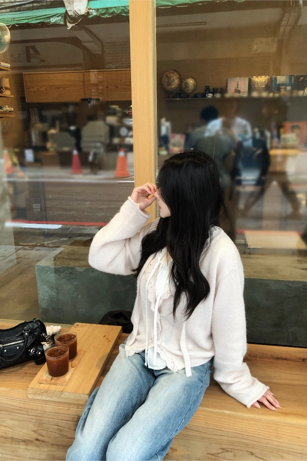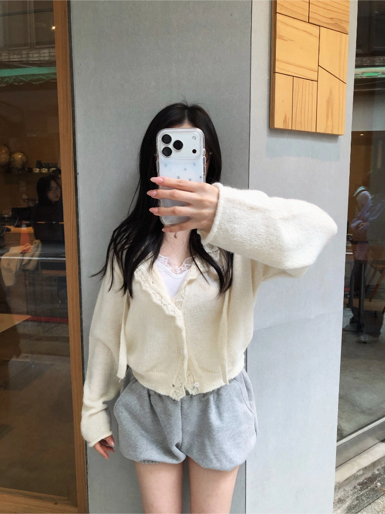 簍空花邊針織衫(灰/粉)