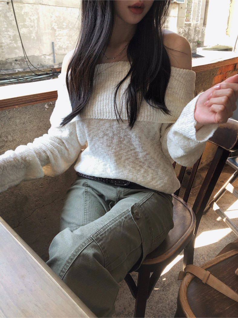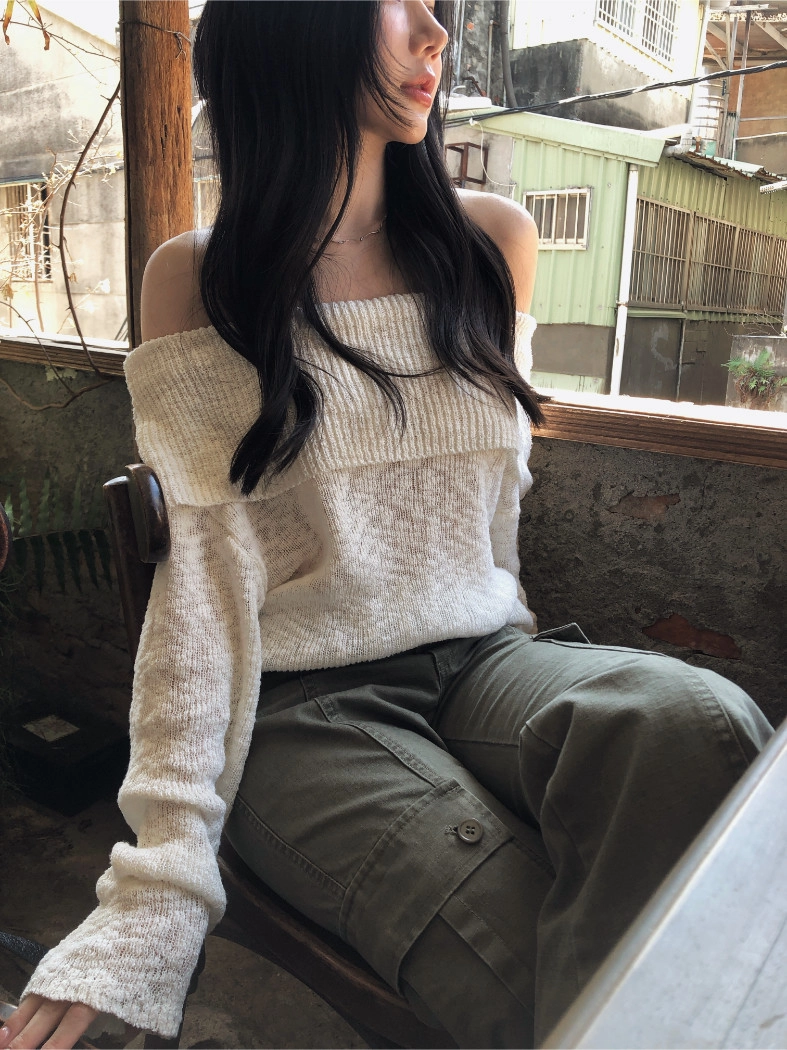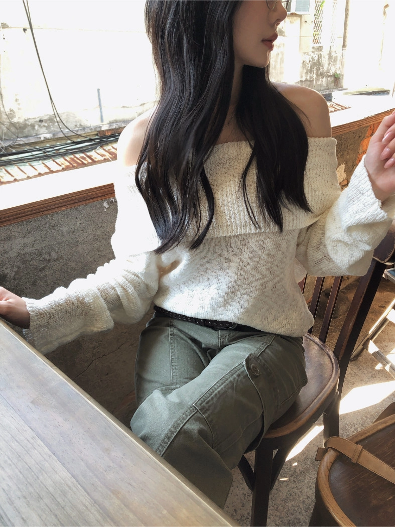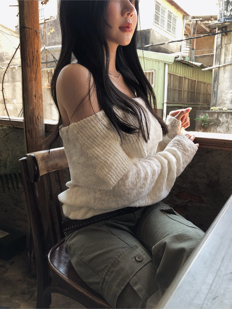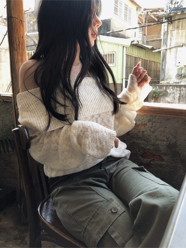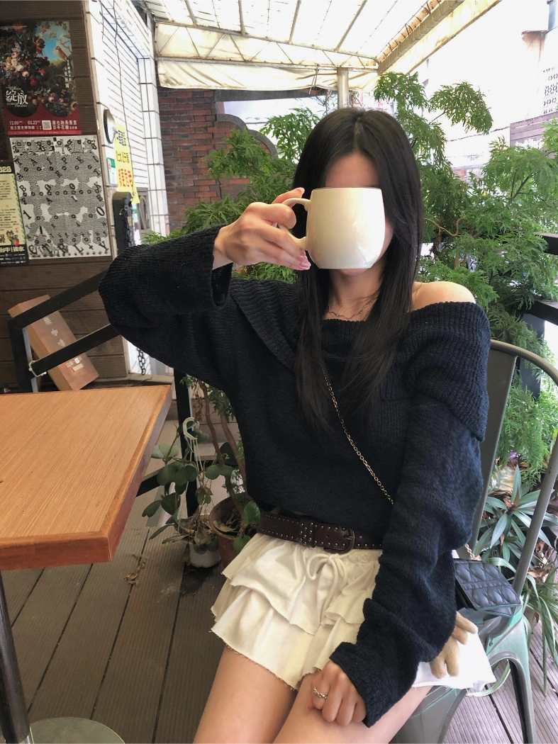慵懶派粗針織上衣(米白/深藍)