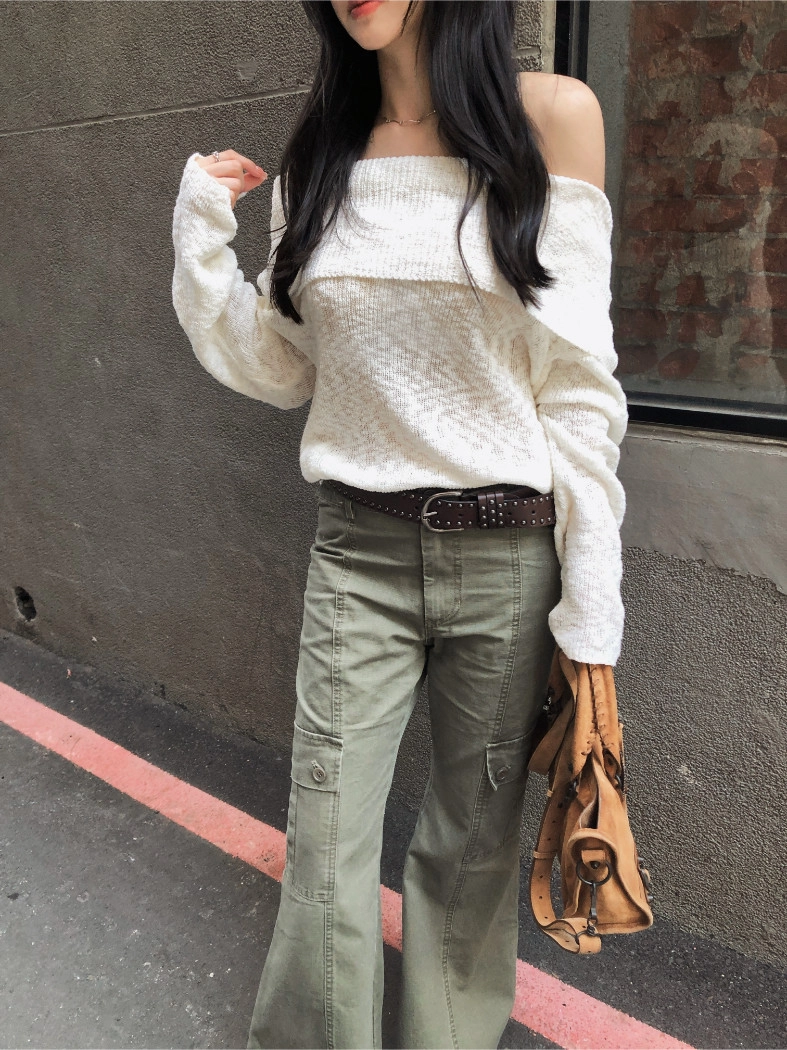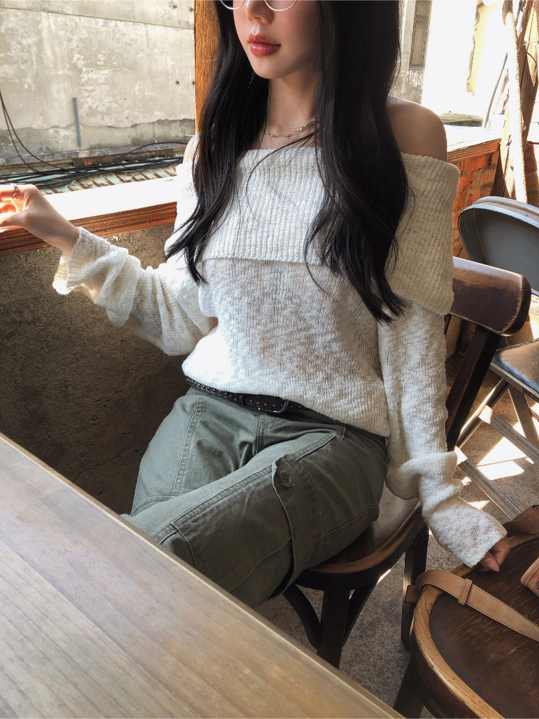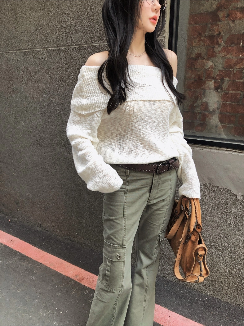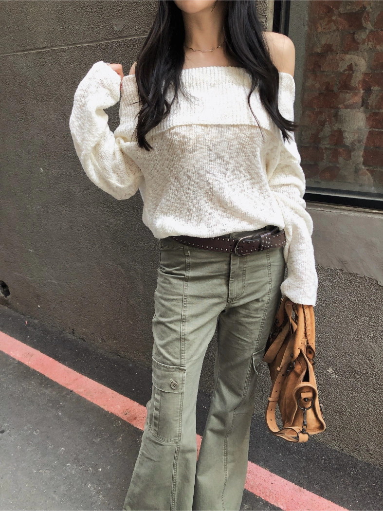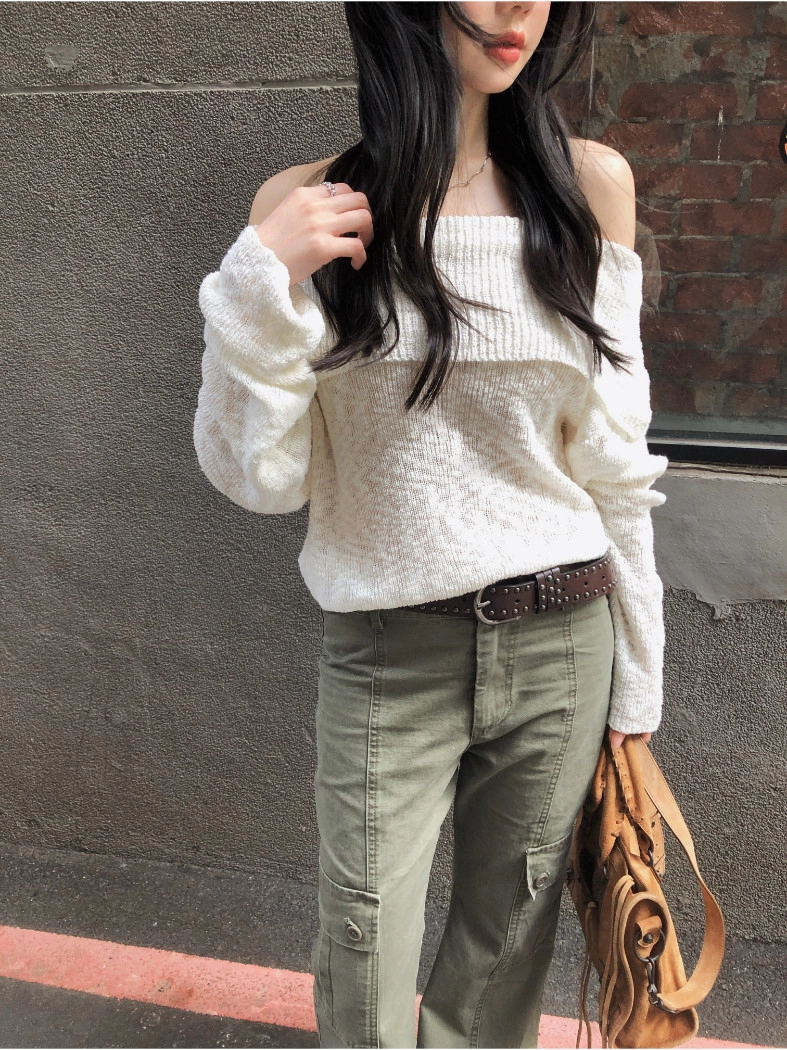 慵懶派粗針織上衣(米白/深藍)