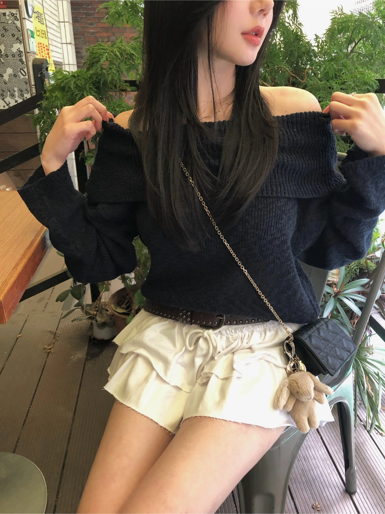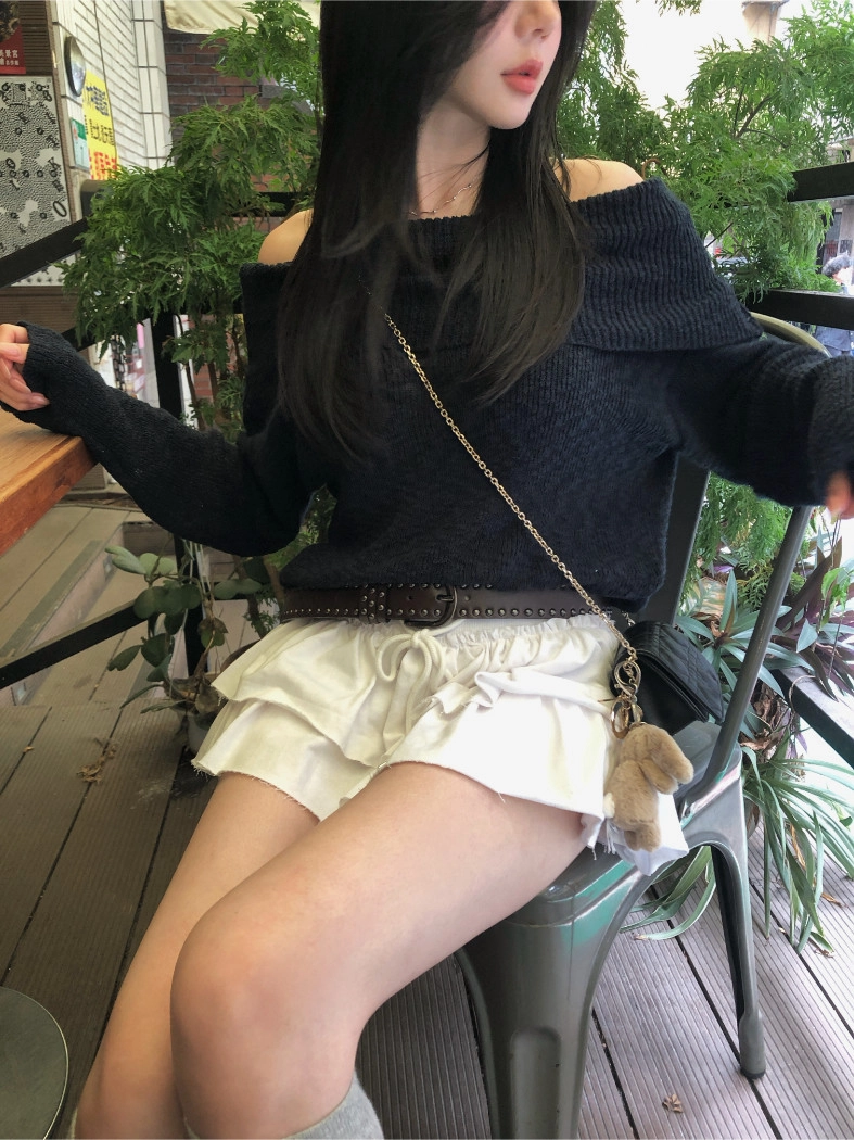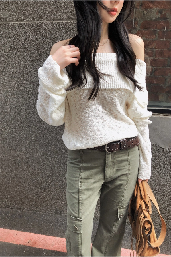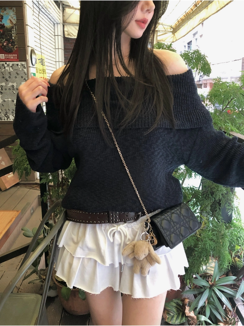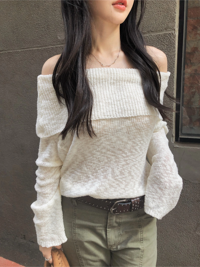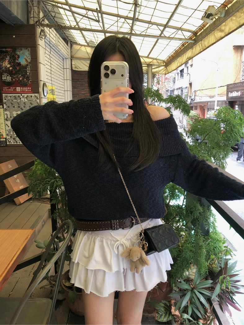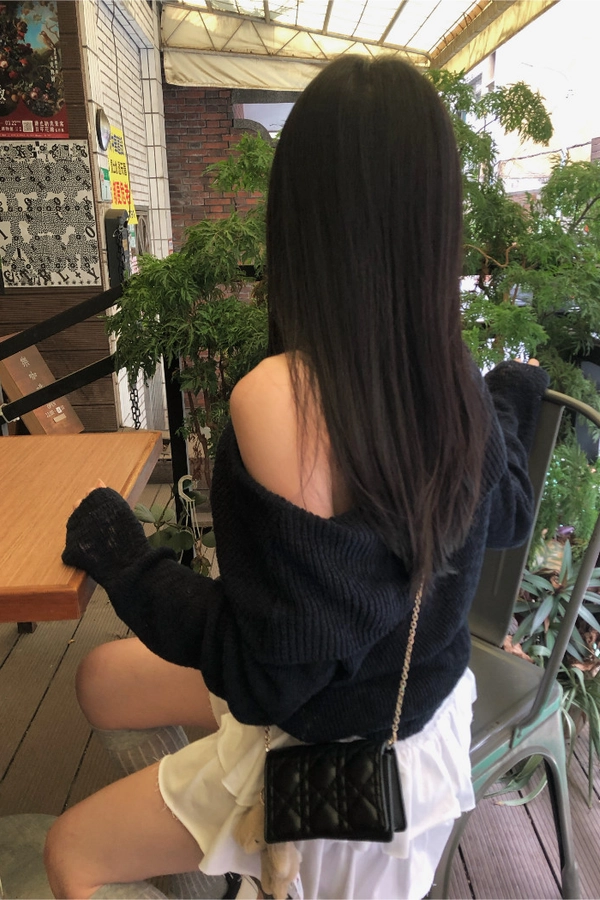 慵懶派粗針織上衣(米白/深藍)