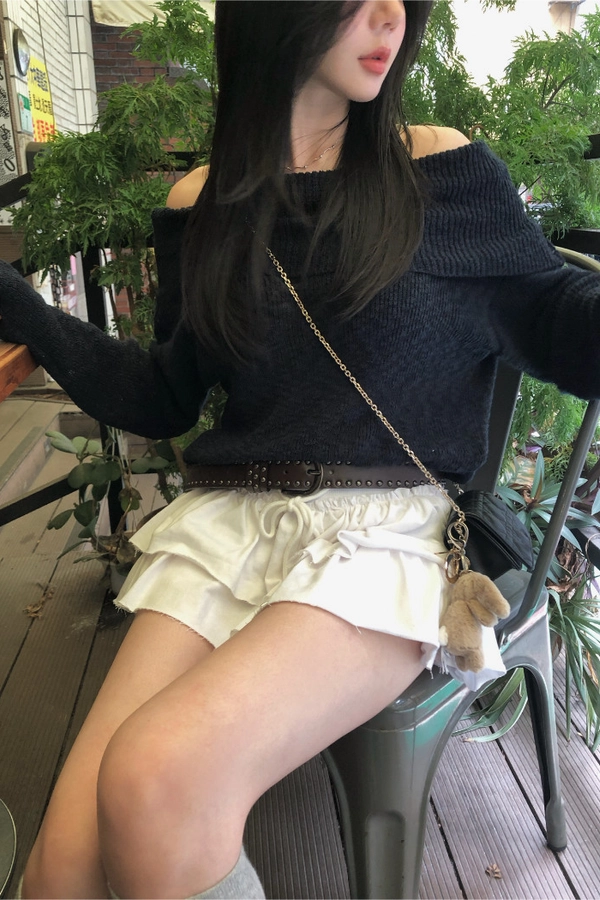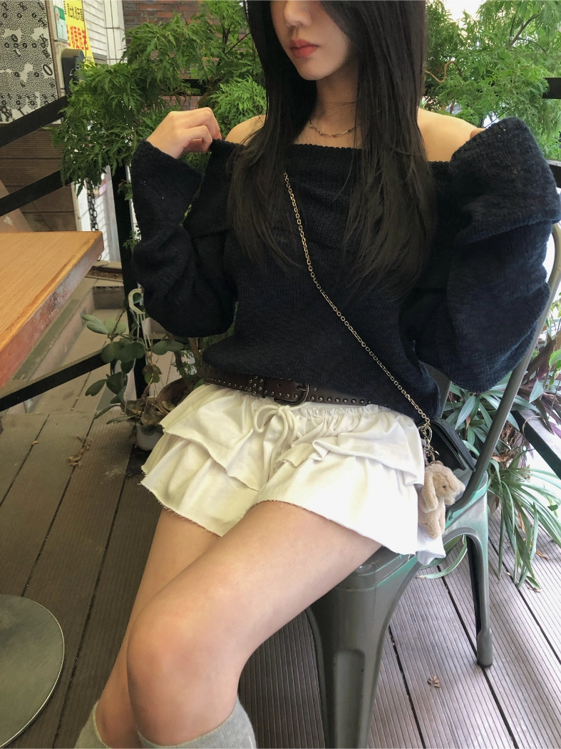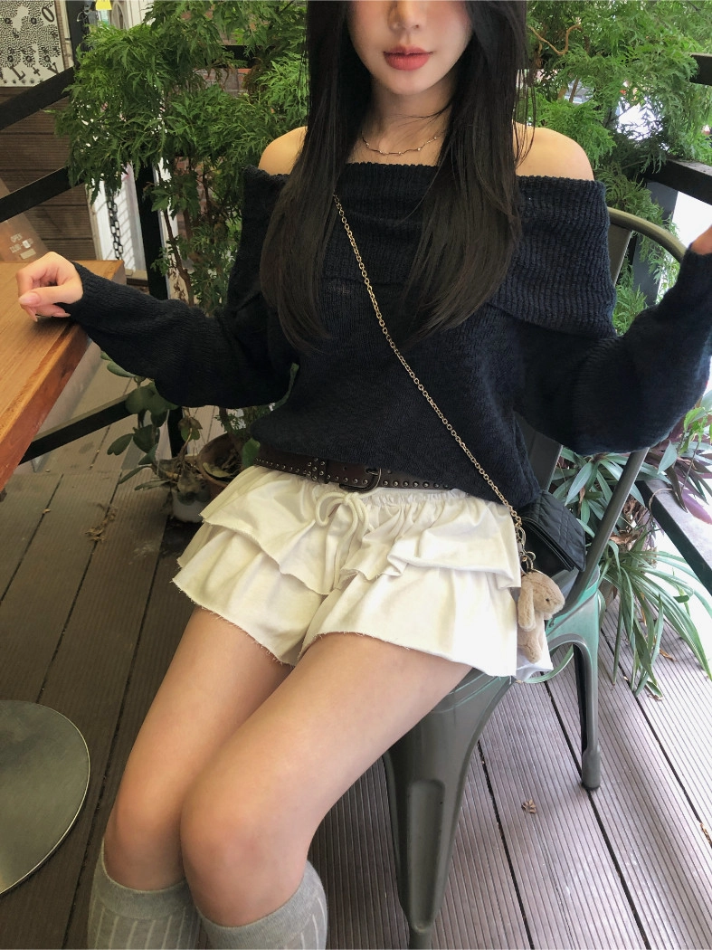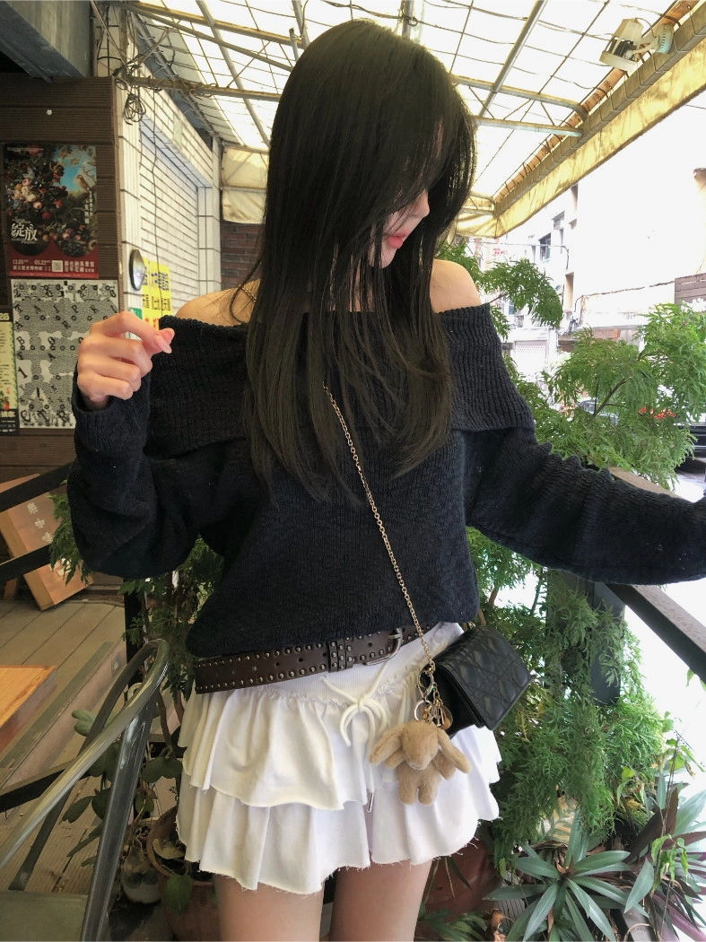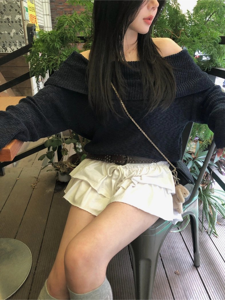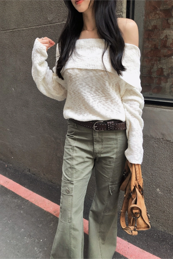 慵懶派粗針織上衣(米白/深藍)