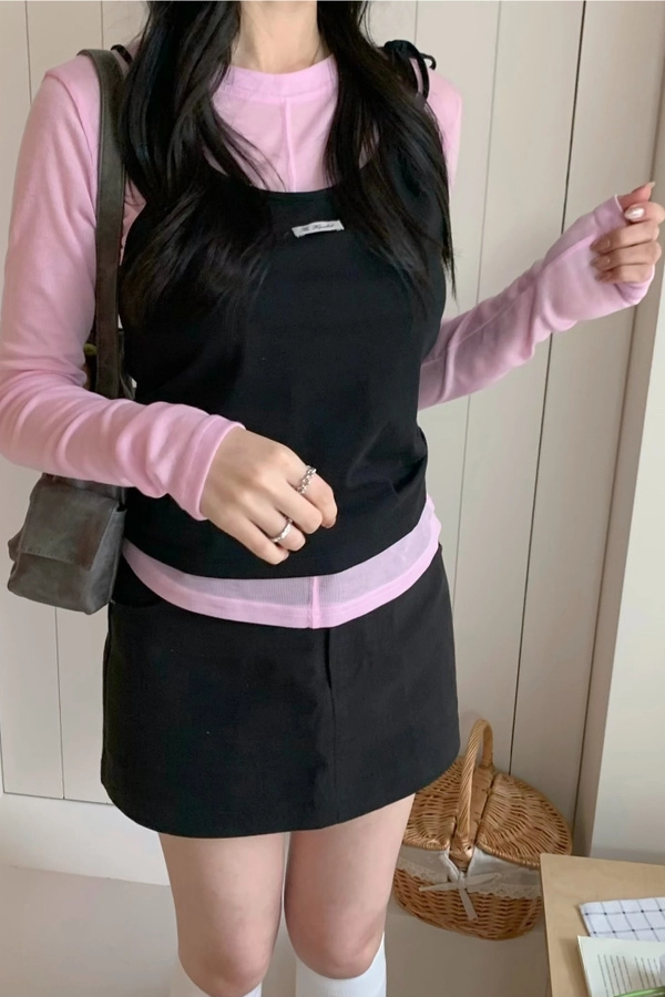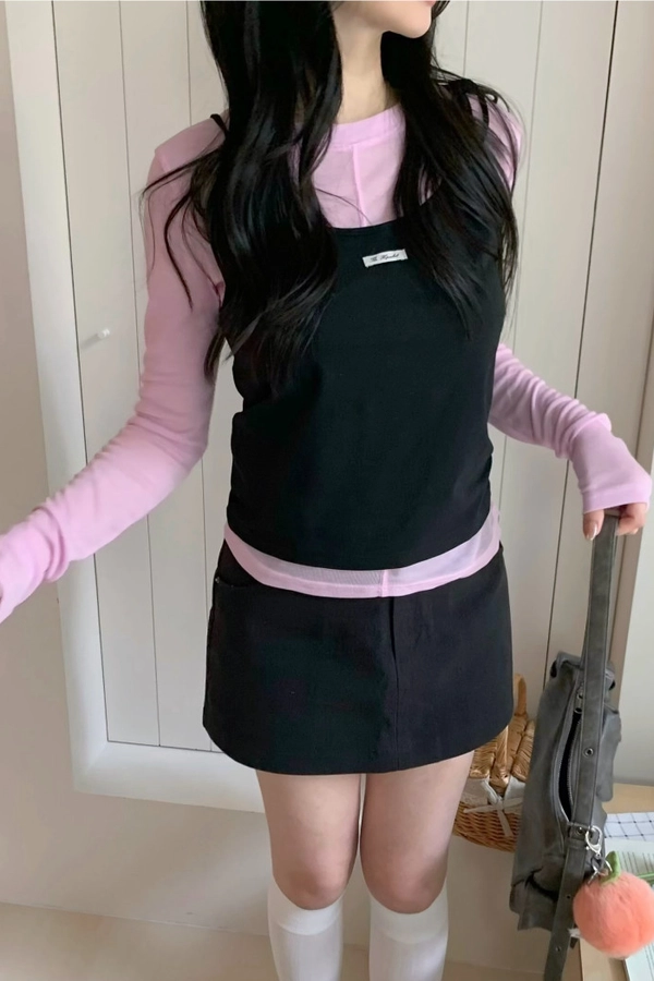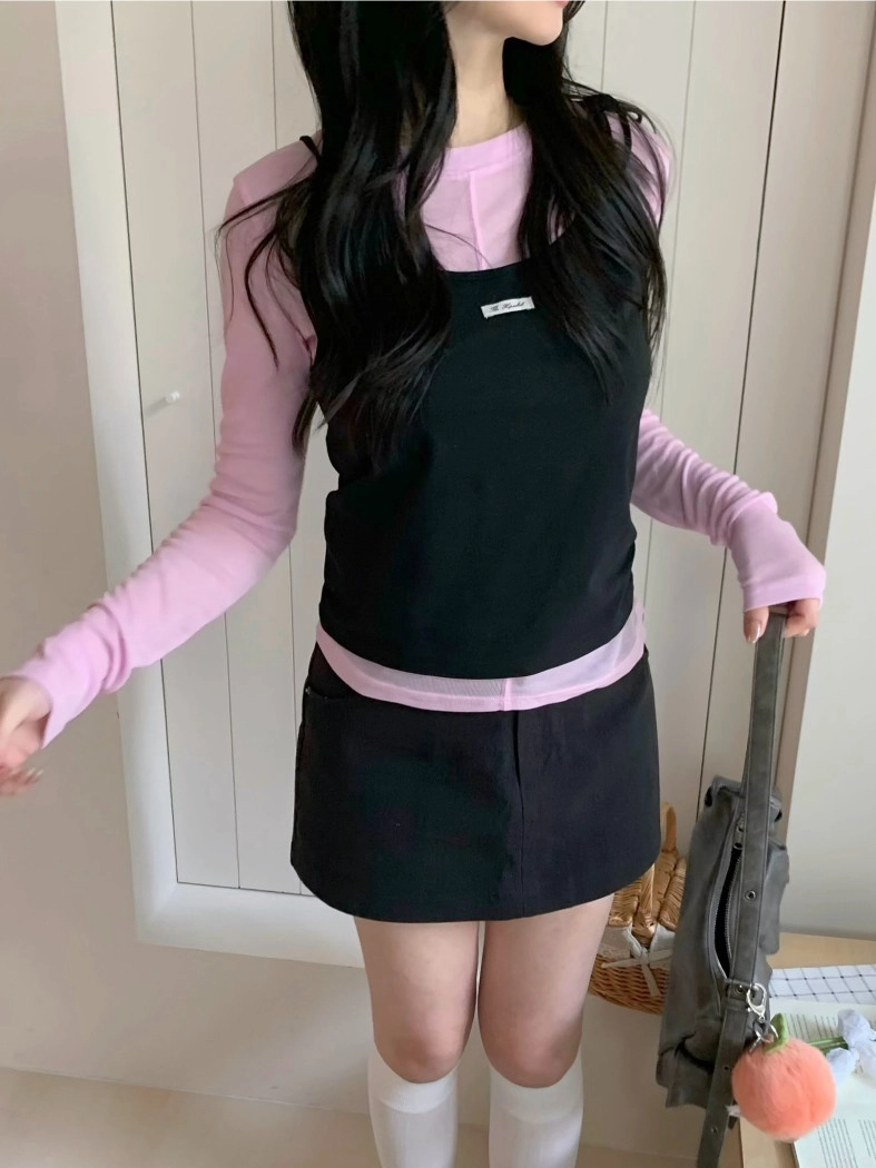 春末夏初兩件式疊搭韓國歐膩風(黑/粉)