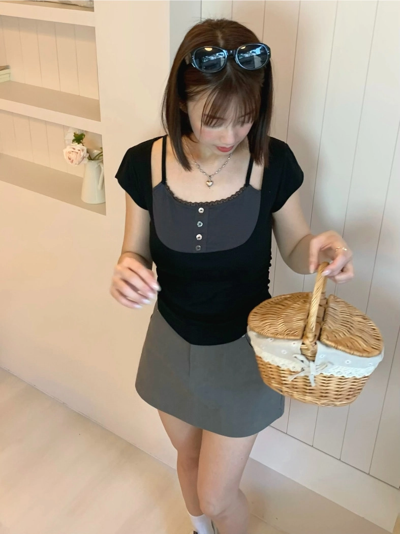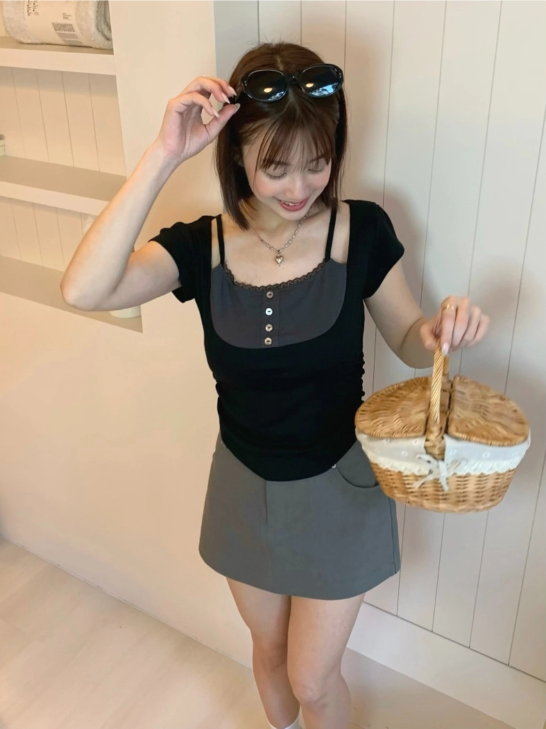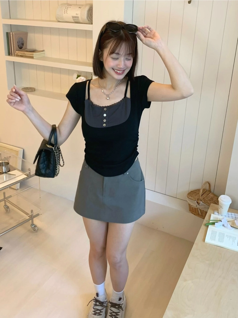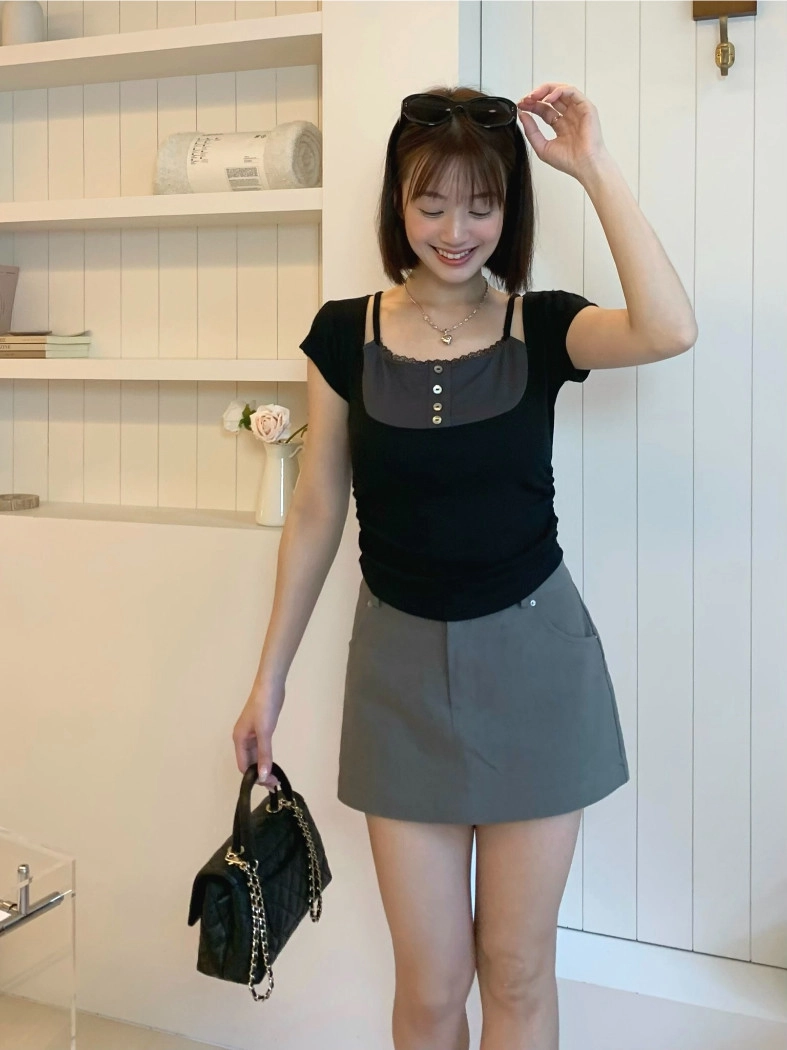 小編自留款♡霧感直筒褲裙(黑/灰)
